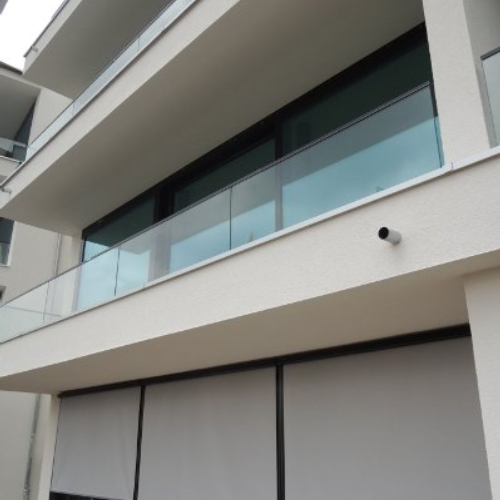 Sonnenschutz für den VIP-Kunden Empfangsbereich einer Uhrenmanufaktur | aufrollbare Sonnensegeln, | Sonnenschutz-Anlagen an großen Glasfronten, hier am Camillo Carre in der Radeberger Vorstadt | Sonnenschutz für die Eigentumswohnungen am Camillo Carre, mit Senkrecht-Beschattungs-Anlagen |