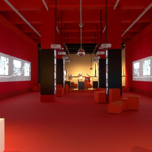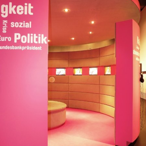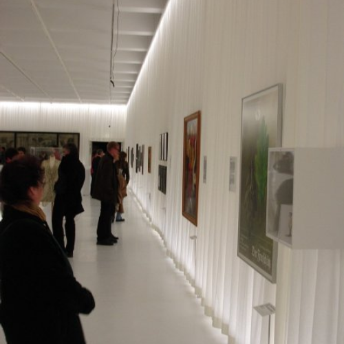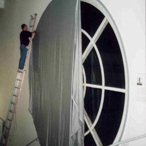 Hygienemuseum Dresden | Ausstatung mehrerer Austellungen mit Wand und Deckenbespannungen | Ausstellungsraum fertig | hier ein spezieller Vorhang, kreisrund mit passend gebogener Aluschiene |