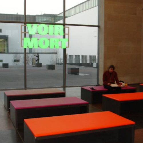Ausstellungsraum fertig | Wandbespannungsarbeiten | Polsterarbeiten, aufliegende Sitzpolster | Polsterarbeiten in der Rundung gebogen, an den Wänden und eine mittige Sitzbank |
