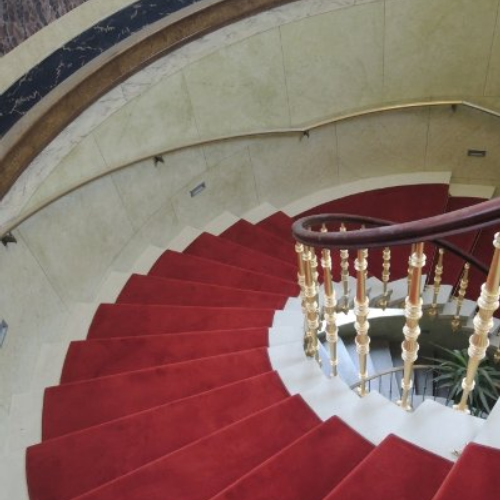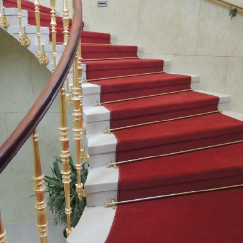 individuelle Verlegung eines Treppenläufers, angepasst an die Rundung der Treppe