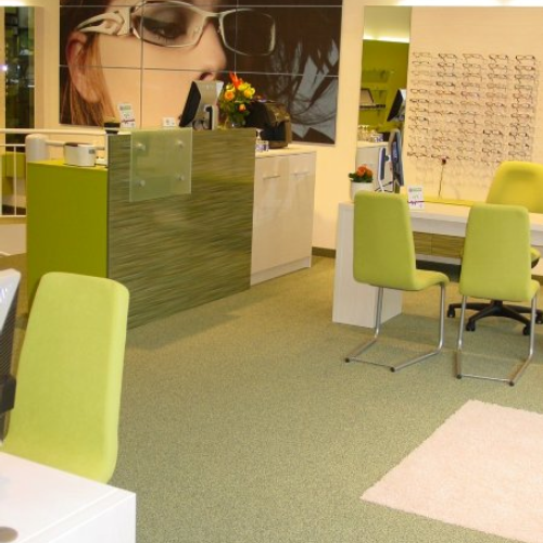 individuelle Ausstattung eines Optiker Ladengeschäftes mit Teppichboden