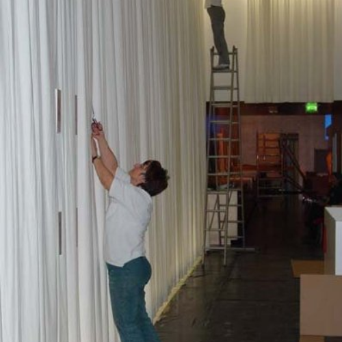 Zu unserem Leistungsprogramm gehört auch die Ausstattung von Räumen mit besonderen Anforderungen, | hier die Montage von Gardinenlaufeinrichtungen und Vorhängen in 8 Meter Höhe in der Kunstakademie Dresden | Lieferung und Montage von Gardinenlaufeinrichtungen und Vorhängen für gehobene Ausstattungswünsche | Anfertigung und Montage einer Wandbespannung im Wartebereich eines Softwareunternehmens |